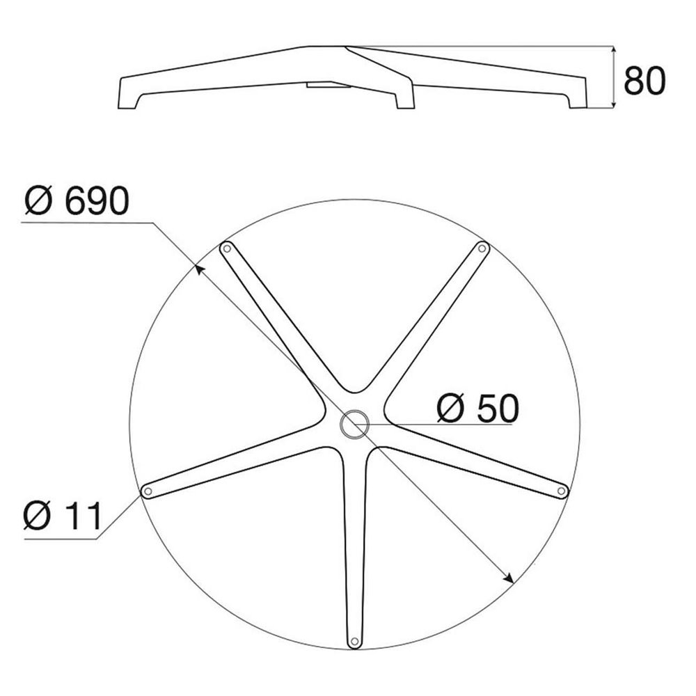 • 5-teens gepolijst aluminium kruisvoet.